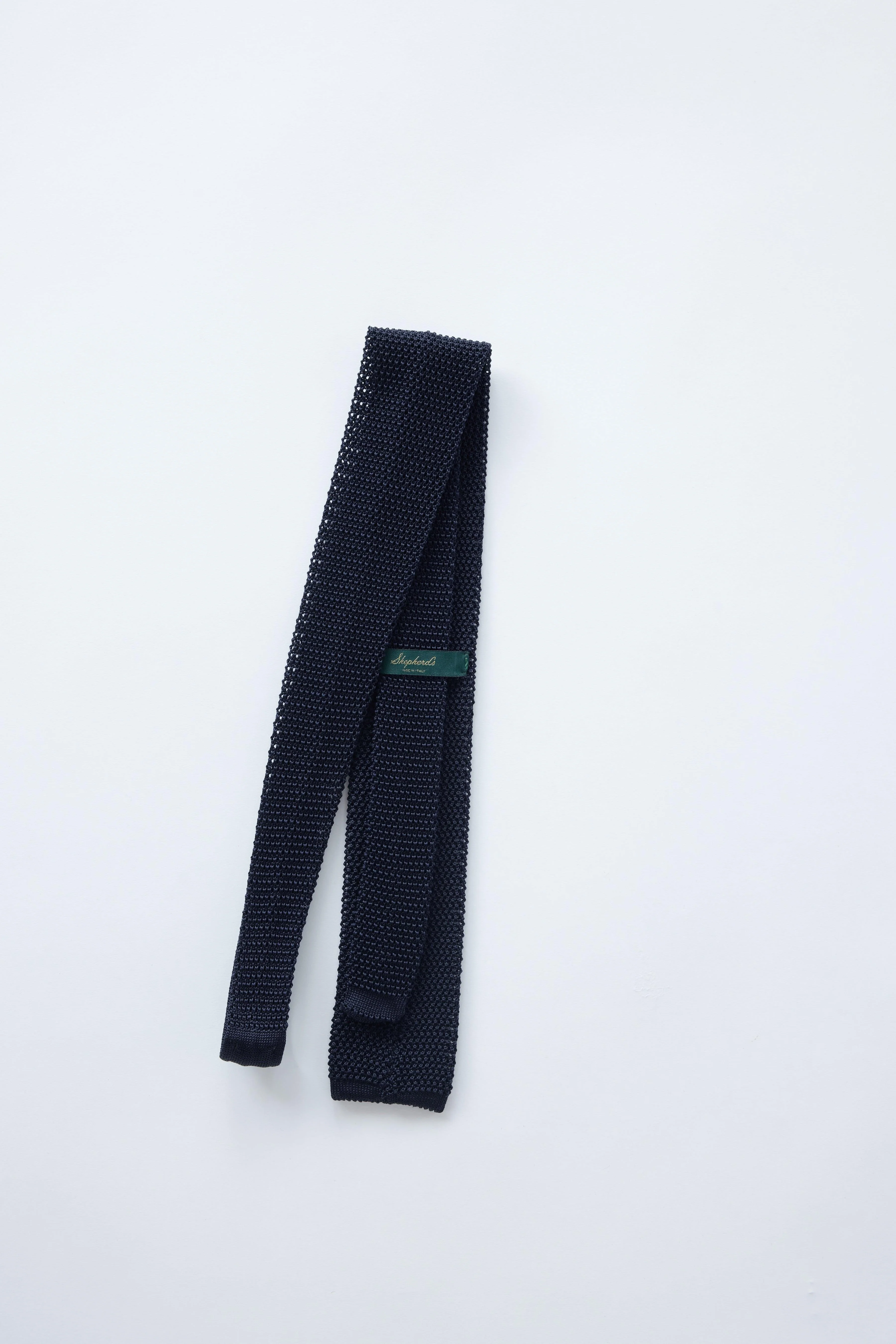 Expertly crafted, including a hand-sewn tip, our Knit Ties exude effortless sophistication and style. With a lovely knit and flat bottom, this tie will elevate any outfit with a touch of refined elegance. What sockless loafers are to dress shoes, these are to the typical silk tie... way cooler.